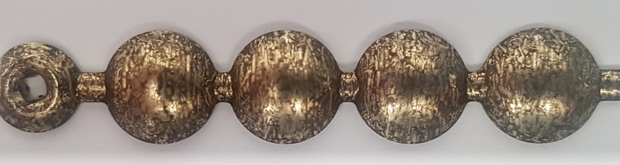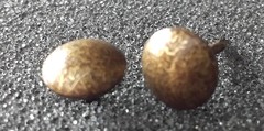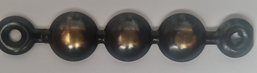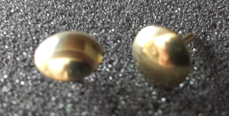 100 and a third Brass stud, 9mm in diameter with a 13mm shank, 1000 in a box. Available individually, and in strip form. This size is also available in Bronze Renaissance, Nickel, Old Gold and 1660 Antique On Steel. ( The Antique On Steel is not in strip form ). Strip form comes in 1metre lengths and requires 20 studs per length.