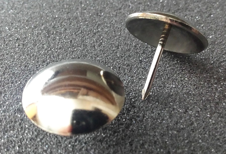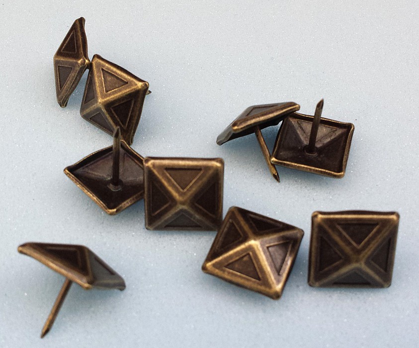 Here at Coopers Birmingham Ltd, we stock a broad range of decorative studs. The ones shown are a 5701 x 16mm Bronze Renaissance, 250 per box. We stock various finishes on the shelf, including, Bronze Renaissance, Nickel, Brass, Old Old, Light Antique On Steel. We can obtain powder coated nails, low dome, high dome and decorative nails. The list is endless so please ask for further details.